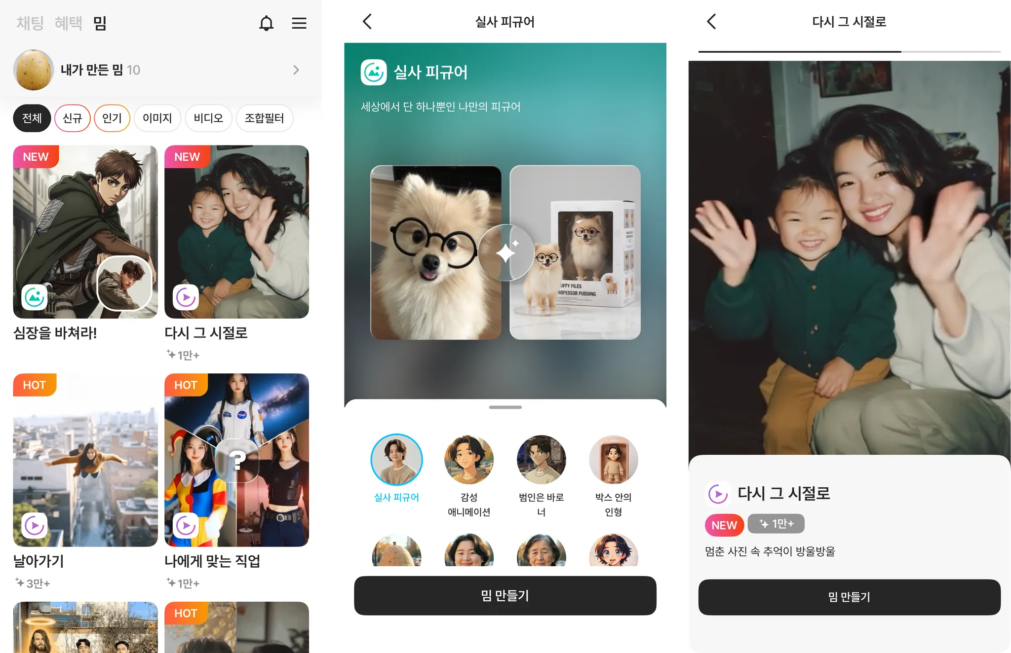 이미지를 동영상으로, 혹은 다양한 필터를 이용해 밈을 만들 수 있어요.