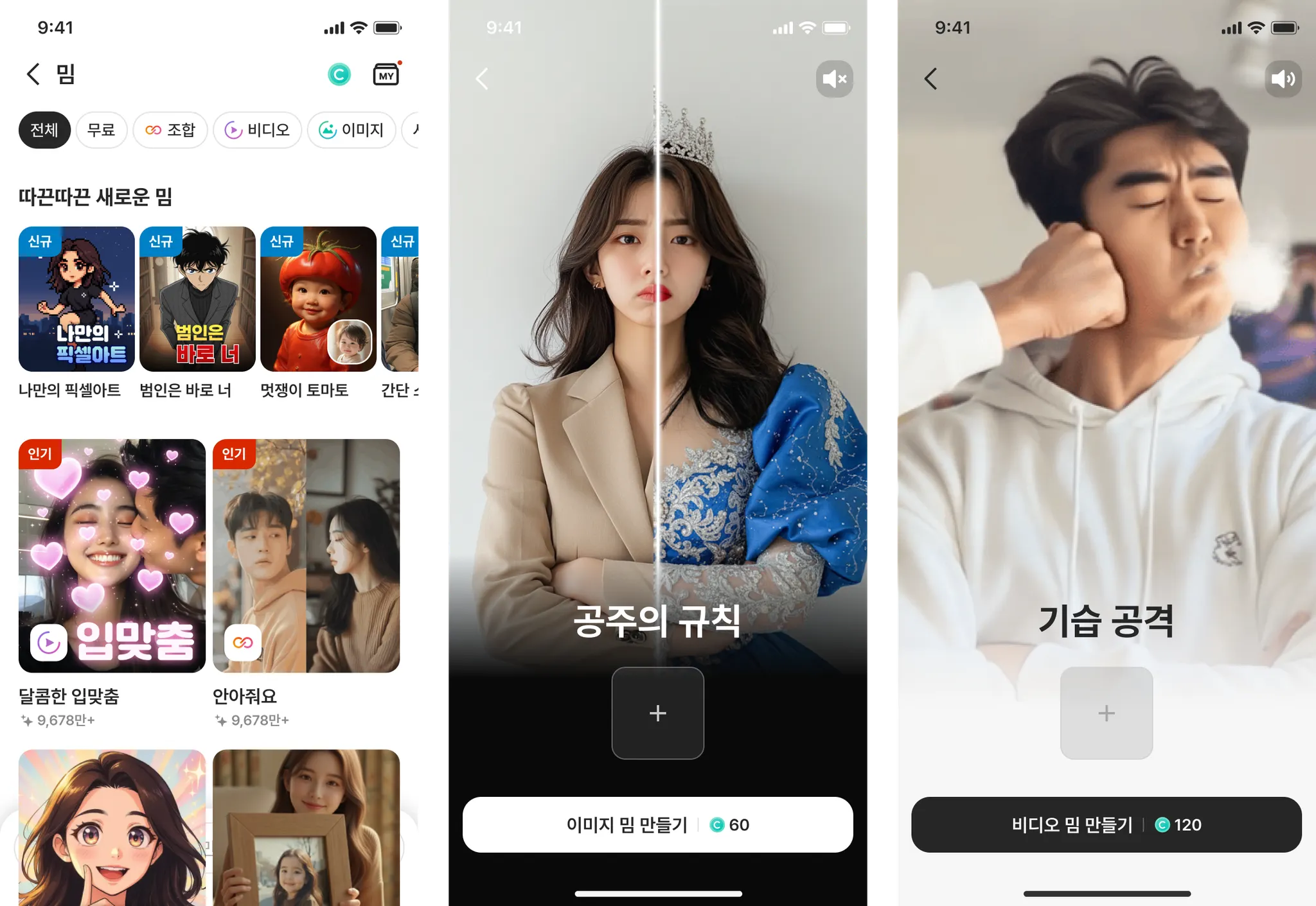 쉽고 간편하게 요즘 뜨는 밈을 만들어 보세요!